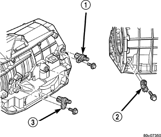 Remove the bolt holding the output speed sensor (1) to the transmission case.