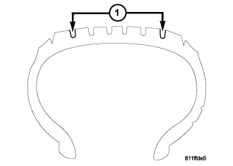 For proper repairing, a radial tire must be removed from the wheel. Repairs should only be made if the defect, or puncture, is in the tread area (1). The tire should be replaced if the puncture is located in the sidewall.