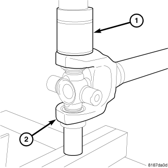 Position receiver/socket (1) on shaft yoke and driver/socket (2) on bearing cap in press.