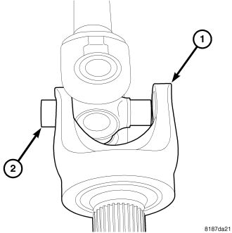 Press bearing cap into shaft yoke (1) until bearing cap snap ring groove is visible and install snap ring (2).
