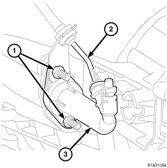 2. Remove mounting nuts (1) from slave cylinder (3).