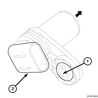 The Crankshaft Position (CKP) sensor (2) is mounted into the right side of the transmission bellhousing (4). It is positioned and bolted into a machined hole.