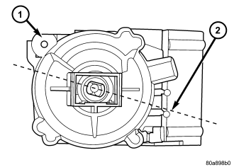 Before installing ignition switch (1), rotate the slot in the switch to the ON position (2).