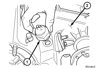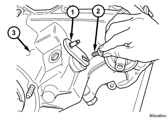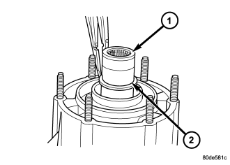 Install the rectangular end of the Flange Holder C-3281 (1) over the bolts to hold the companion flange stationary and remove the nut holding the companion flange to the output shaft.