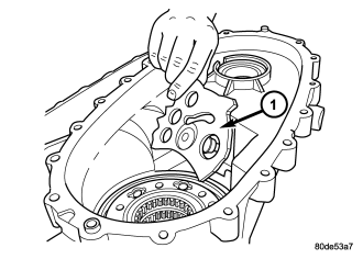 Remove rear extension housing (1). Tap extension once or twice with a plastic mallet to break sealer bead and loosen it.
