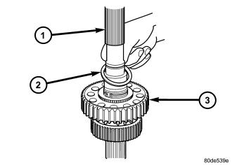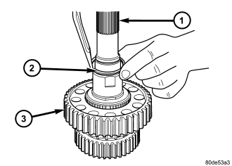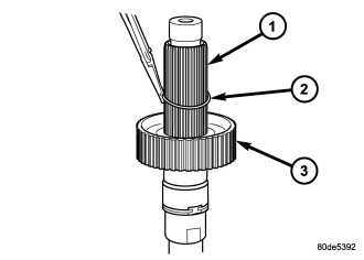 Remove the mode hub (3) retaining ring (2) from the output shaft (1).
