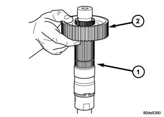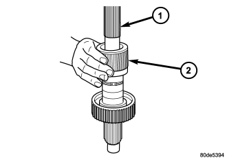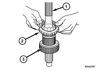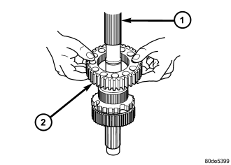 Pull mainshaft assembly (2) out of input gear, mode sleeve, and front case (1).