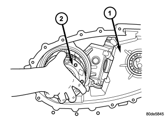 Loosen rear case (1) with pry tool to break sealer bead. Insert tool in slot (3) at each end of case.