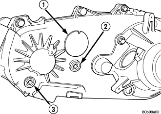 The fill (2) and drain (3) plugs are both in the rear case. Correct fill level is to the bottom edge of the fill plug hole. Be sure the vehicle is level to ensure an accurate fluid level check.