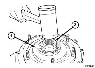 Remove the front output shaft bearing with Universal Handle C-4171 (1) and Installer 8239 (2).