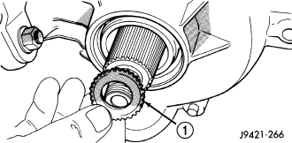 Using Spanner Wrench 6958 (2), remove yoke nut. Discard nut after removal. It is not reusable.