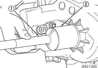 Install yoke (2) on front output shaft. Install a new yoke nut onto the front output shaft.
