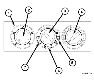The A/C-heater control (1) for the manual temperature control (MTC) single zone system allows one temperature setting for the entire vehicle. All controls are identified by ISO graphic symbols.