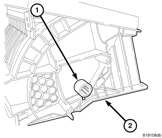 Install the recirculation door pivot shaft adapter (1) into the right side pivot shaft of the recirculation air-door. Make sure the adapter is fully engaged to the pivot shaft.