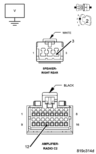 Measure for voltage on the (X206) Amplified Right Rear Speaker (+) circuit.
