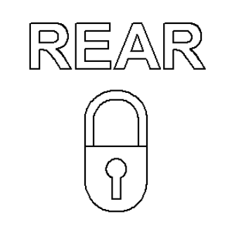 The rear axle lock indicator consists of a stencil-like cutout of the word REAR above the International Control and Display Symbol icon for Lock in the opaque layer of the instrument cluster overlay. The dark outer layer of the overlay prevents the indicator from being clearly visible when it is not illuminated. An amber Light Emitting Diode (LED) behind the cutout in the opaque layer of the overlay causes the indicator to appear in amber through the translucent outer layer of the overlay when it is illuminated from behind by the LED, which is soldered onto the instrument cluster electronic circuit board.