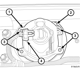 Reconnect the engine compartment wire harness connector (4) to the fog lamp bulb connector receptacle.