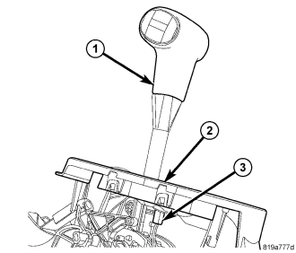 Remove the center floor console from over the gear selector lever (1) and bezel (2).