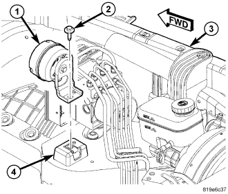 Remove the screw (2) that secures the siren mounting bracket to the U-nut and stanchion on the component tray.