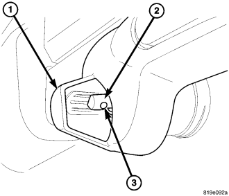 The rear washer nozzle receives washer fluid through the rear wiper motor output shaft. Washer fluid is supplied to the rear wiper motor through the hardtop washer hose (3) which is connected to a molded plastic barbed fitting (2) on the motor transmission housing (1) on the upper left corner of the inner rear lift glass. The washer supply hose and rear wiper motor are concealed on the inside of the lift glass by a molded plastic trim cover.