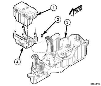 Position the TIPM (1) onto the mounting bracket (4) and push down until the mounting clips are fully seated.