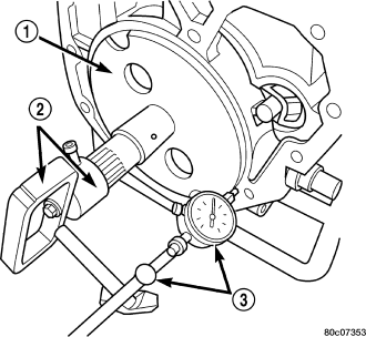 11. Using Alignment Plate 8261 (1), Adapter 8266-17 from End-Play Tool Set 8266 (2) and Dial Indicator C-3339 (3), measure and record the output shaft end-play.