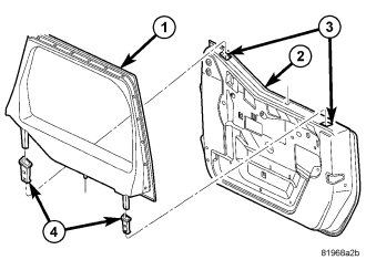 2. Install the window (1) into the grommets (4) and seat fully.