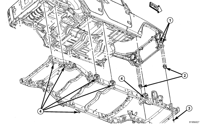 Four door model shown in the illustration. Body isolators for two door models are similar.