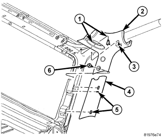 Position the lower A-pillar trim (4) onto the A-pillar and seat the clips (5) fully.