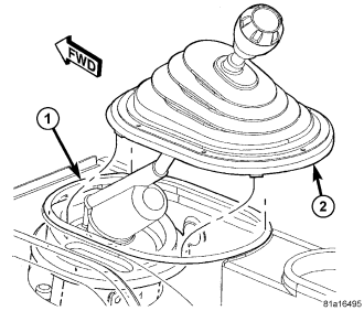 On manual transmission vehicles, using a trim stick C-4755 or equivalent, separate the shifter boot (2) from the console bezel (1).