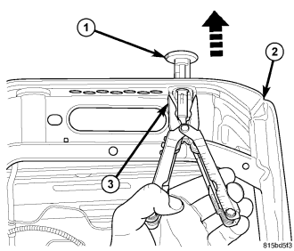 Squeeze the locking tab (3) and remove the headrest sleeves (1).