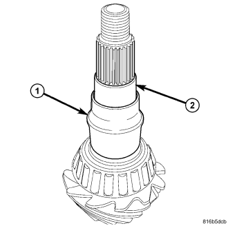 Install new collapsible spacer (1) on pinion shaft (2) and install pinion into the housing.