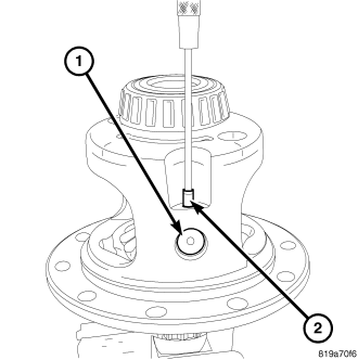 Install pinion gear thrust washers (1) between the gear and case (2). Align washers with mate shaft hole in the case.