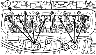 Install rocker arms and shaft assembly (1).