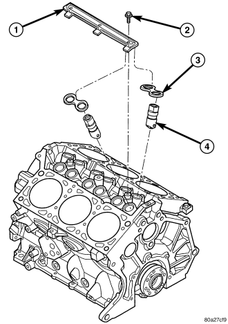 NOTE: The camshaft bearings are serviced with the engine block.