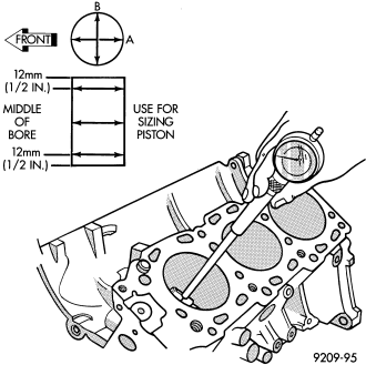 The piston and cylinder wall must be clean and dry. Piston diameter should be measured 90 degrees to piston pin at size location shown in .