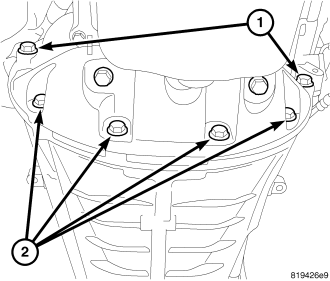 2. Remove the bolts retaining structural cover to transmission (1,2).