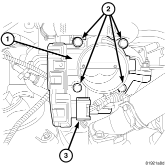 Disconnect the throttle connectors (ETC) (3) from the throttle body.