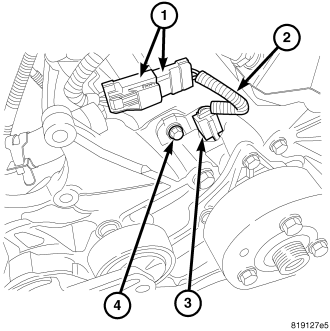 Remove camshaft position sensor (CMP) (4) from timing chain cover