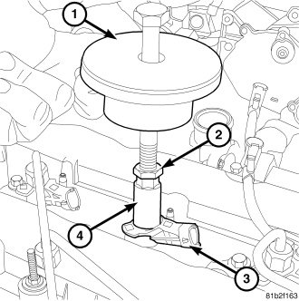 Install special slide hammer tool #8941 (1) onto special tool #9552 (4). Tighten lock nut (2). Remove injector from cylinder head.