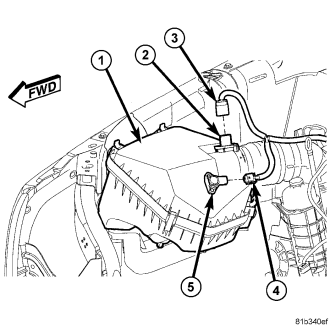 The Mass Airflow Sensor (2) is located on the air cleaner cover (1).