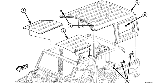 Remove the six side bolts (5) and remove the main hard top (4).
