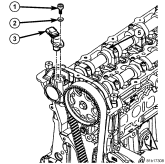 The Camshaft Position Sensor (CMP) (3) is located at the front/top of the cylinder head.