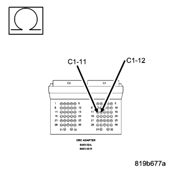 Measure the resistance between the (R42) Passenger Squib 1 Line 2 circuit cavity C1-12 and the (R44) Passenger Squib 1 Line 1 circuit cavity C1-11 at the ORC 8443-32-L Adaptor.