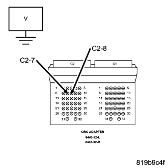 Measure the voltage of the (R55) Driver Seat Belt Retractor Tensioner Line 1 circuit between the Driver Seat Belt Tensioner connector and ground.