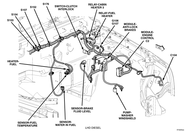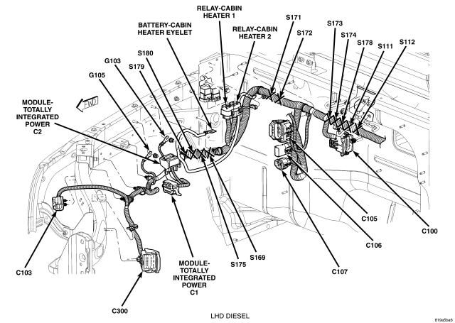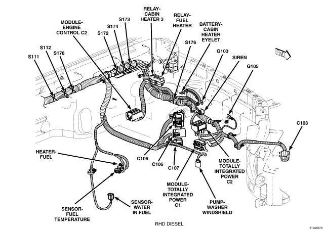 RIGHT ENGINE COMPARTMENT (RHD DIESEL), LEFT ENGINE COMPARTMENT (RHD DIESEL), LEFT ENGINE COMPARTMENT (LHD DIESEL)