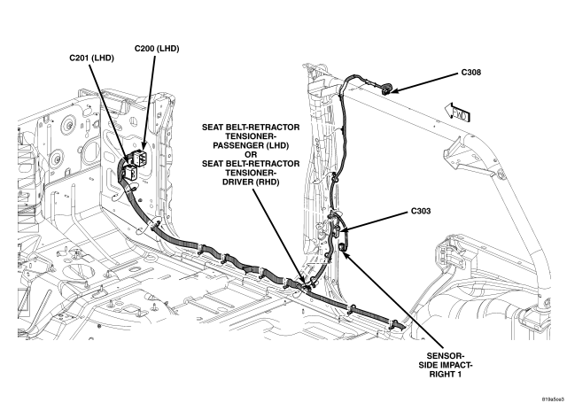 Right Front Chassis Harness Near Wheel Speed Sensor T/O