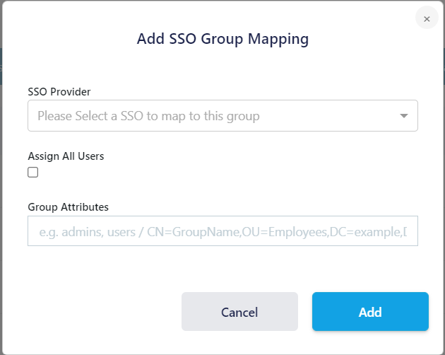 Kasm Workspaces can be configured to automatically map LDAP users to specific Kasm application groups via their LDAP group membership. The mapping is updated for each user when the user logs into the Kasm Web Application. The mapping functionality can be accessed by using the three dot menu and selecting view for the group you want to add a the mapping. Then scroll to the bottom of the screen where the SSO Group Mappings section is and click Add SSO Mapping. The Add SSO Mapping Screen is presented the following fields are available to be filled in: