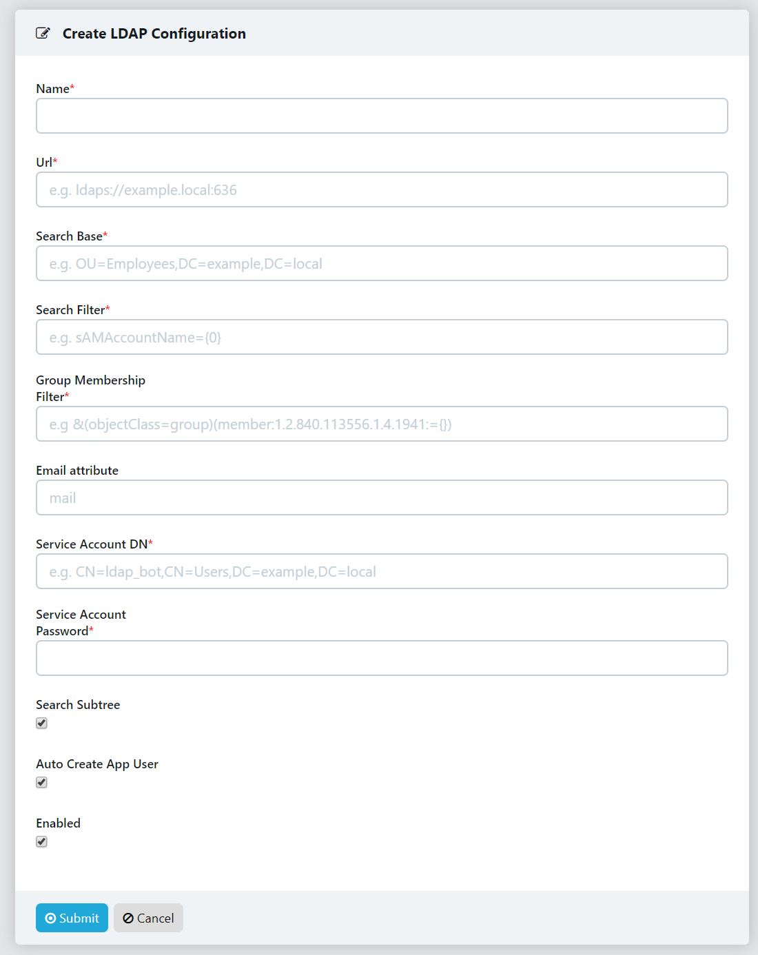 The first step in configuring Kasm to use LDAP for authentication is to set up an LDAP configuration.