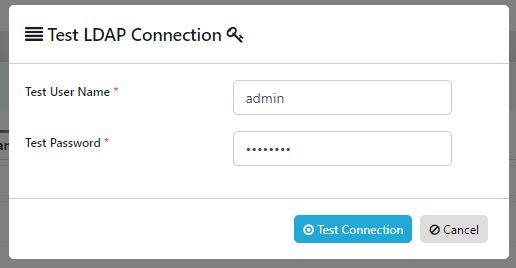 After creating an LDAP configuration, you can test the settings by clicking the Test LDAP Connection icon on the LDAP Configurations Page.